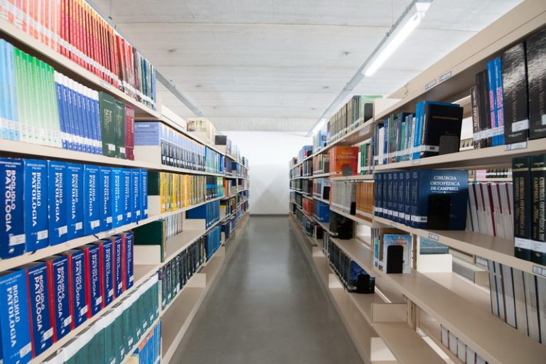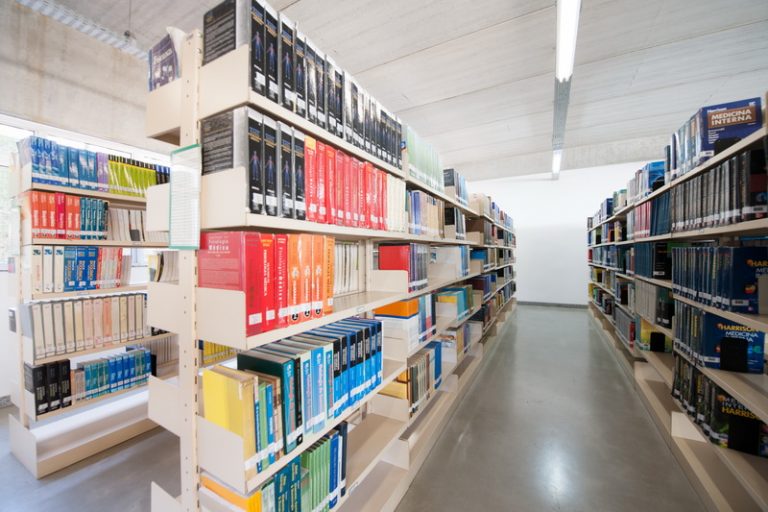 b) acervo, onde é feito o livre acesso aos livros, periódicos, materiais multimídia, manuais, TCC’s, teses e dissertações;