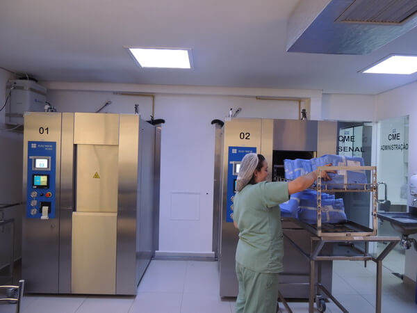 A CME do Hosptial e Maternidade Therezinha de Jesus funciona nas 24 horas com pessoal técnico treinado dentro destas boas práticas que compõem seu processo de trabalho. Possui autoclaves a vapor de fluxo unidirecional – com componentes de barreira, proporcionando ao processo uma porta de entrada (de material contaminado) diferente da de saída (de material estéril). Toda a estrutura foi ampliada e redimensionada para receber também uma lavadora ultrassônica que possui parâmetro de alto nível, com programação que permite lavar instrumentais e materiais de luz, os chamados canulados. O equipamento conta com sistema de dosagem de detergente enzimático automático. E para garantir o processo completo, a CME comporta ainda uma termodesinfectora – para materiais sensíveis -, além de uma secadora de canulados.